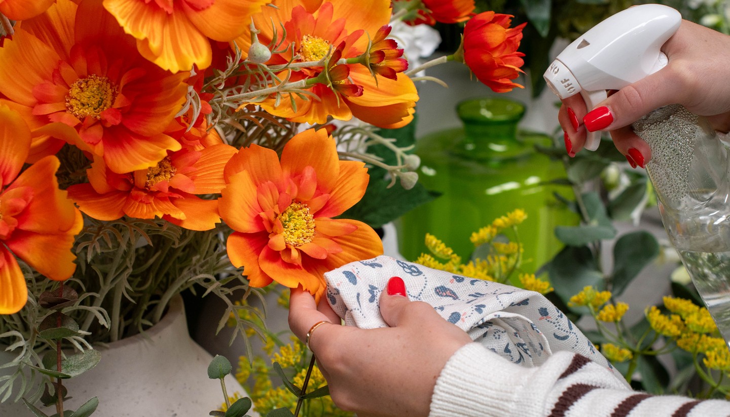 • Silk plants: Use a barely damp cloth to avoid water staining