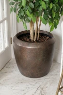 A characterful artificial ficus tree in a textured planter. Perfect for creating an industrial or earthy design statement.