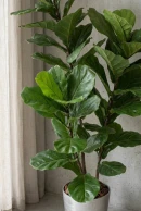 Fiddle leafs are the 'it' houseplant that is still trending 5 years later. Their popularity comes from their beautifully broad leaves and the variety of sizes they come in. Our artificial variants, complete with a sleek pot are no exception. They pair beautifully with narrow leaf plants and taller palms for a stunning cluster look.