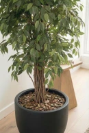 Enhance your space with our artificial ficus tree and sleek pot combination. Featuring lush green leaves and a natural bark trunk that seamlessly blends into any decor, its perfect balance of height and subtlety adds depth to your interior without overpowering the room.