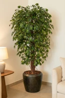 Enhance your space with our artificial ficus tree and sleek pot combination. Featuring lush green leaves and a natural bark trunk that seamlessly blends into any decor, its perfect balance of height and subtlety adds depth to your interior without overpowering the room.