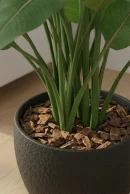 Infuse your space with tropical charm with our Flowering Bird of Paradise and sleek pot combination. Its uniquely shaped orange flower is sure to captivate attention, offering vibrant allure without the upkeep demands of live tropical plants.