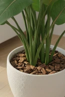 Infuse your space with tropical charm with our Flowering Bird of Paradise and sleek pot combination. Its uniquely shaped orange flower is sure to captivate attention, offering vibrant allure without the upkeep demands of live tropical plants.