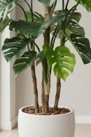 Escape to a tropical island paradise with our expertly crafted Monstera and sleek pot combination. Its natural, preserved stem and lifelike artificial leaves create a stunningly authentic look.