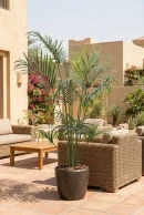 Escape to a tropical island paradise with our ultra-realistic Kentia Palm and sleek pot combination. Available in a range of sizes, it's the perfect addition to any outdoor space. Its beautifully sprawling fronds, crafted from our durable UVSilx foliage, ensure it will withstand harsh weather conditions and direct sunlight, maintaining its vibrant colour and realism without signs of damage or discolouration.